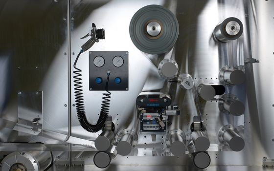 Für die kontinuierliche Fertigung multifunktionaler Folien setzt das Fraunhofer IPT seit mehreren Jahren auf eine im eigenen Haus entwickelte Rolle-zu-Rolle-Anlage, die mit unterschiedlichen Modulen betrieben werden kann. Mit der Anlage lassen sich kostengünstig Folien mit integrierten fluidischen, optischen oder elektronischen Funktionen herstellen. Ein Inkjet-Modul ermöglicht es, die gedruckte Elektronik auf Folie aufzutragen. Ein weiteres Modul verbindet die funktionalisierten Schichten zu einem mehrlagigen Foliensystem. Der modulare Aufbau gewährleistet eine freie Kombination der unterschiedlichen Module, um schnell und kundenorientiert individuelle Anlagen aufzubauen und umzurüsten.