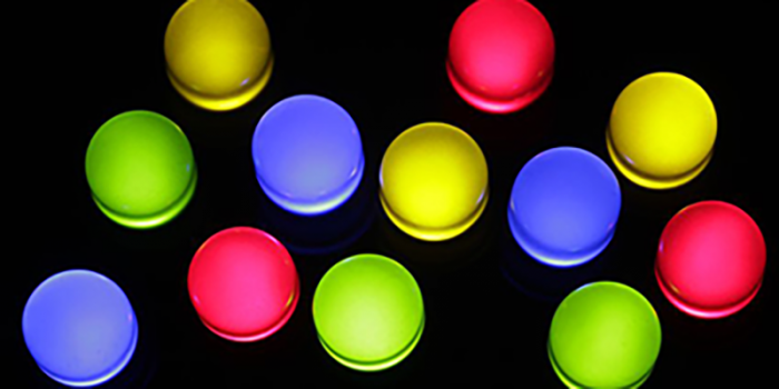 Anders als die gute alte Glühbirne strahlen Leuchtdioden (LEDs) in definierten Farben von Infrarot bis Ultraviolett. Die genaue Wellenlänge ist dabei abhängig von der Art des Halbleitermaterials, dem Kernstück der LEDs. Bei einigen Materialien lässt sich die Farbe zusätzlich über die Größe der Halbleiter-Kristalle einstellen. Liegt diese nämlich im Bereich weniger Nanometer, kommen Quanteneffekte zum Tragen.