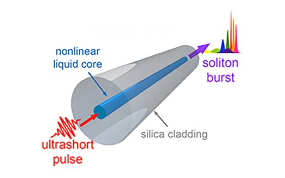Originalveröffentlichung: Hybrid soliton dynamics in liquid-core fibres, Mario Chemnitz, Martin Gebhardt, Christian Gaida, Fabian Stutzki, Jens Kobelke, Jens Limpert, Andreas Tünnermann und Markus A. Schmidt, Nature Communications, DOI: 10.1038/s41467-017-00033-5.