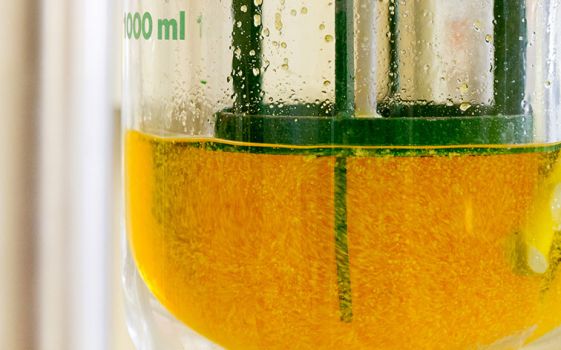 Am Fraunhofer IGB stellen die Forscherinnen und Forscher zahlreiche Chemikalien mithilfe von Pilzen her. Beispiel Apfelsäure: Für sie gibt es einen stetig wachsenden Markt. So sorgt sie für den sauren Geschmack in Produkten wie Marmeladen und Säften und verbessert die Haltbarkeit von Backwaren. Zudem kann sie als Baustein für biobasierte Polyester eingesetzt werden. Herstellen lässt sie sich über Schimmelpilze – der Prozess ähnelt dem Bierbrauen. Während beim Bierbrauen die Hefen den Malzzucker der Gerste fermentieren, sind es bei der Apfelsäureherstellung Aspergillus-Pilze, die Zucker oder Pflanzenöle verwerten. Vereinfacht gesagt: Die Pilze werden beispielsweise mit einer Zuckerlösung auf Holzbasis gefüttert und bilden daraufhin die gewünschte Apfelsäure. Im Labormaßstab funktioniert diese Fermentation schon gut. Derzeit arbeiten die Forscherinnen und Forscher des IGB daran, den Prozess für die industrielle Produktion auszulegen. Unter anderem wollen sie die Ausbeute bei der Fermentation verbessern.