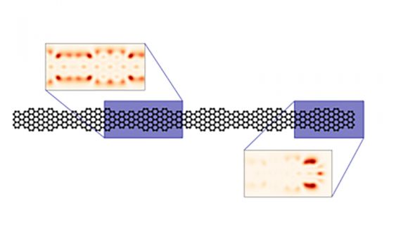 Zwei Forschungsteams ist es im vergangenen Jahr unabhängig voneinander gelungen, heterogene schmale Kohlenstoff-Nanobänder herzustellen und die Elektronen-Energien darin auszumessen. Bei den Bändern wechseln sich verschieden breite Bereiche regelmäßig ab. Dadurch entstehen unterschiedliche Energiezustände mit einer eigenen elektronischen Struktur. In theoretischen Modellen konnten die Messergebnisse aber nicht vollständig reproduziert werden, so Bonitz, der den Lehrstuhl für statistische Physik am ITAP leitet. Zusammen mit seinem Doktoranden Jan-Philip Joost und dem dänischen Kollegen Professor Antti-Pekka Jauho von der Technischen Universität Dänemark (DTU) entwickelte er ein verbessertes Modell und erreichte damit eine hervorragende Übereinstimmung mit den Experimenten. Die theoretischen Resultate stellen die Physiker in der aktuellen Ausgabe der renommierten Fachzeitschrift Nano Letters vor.