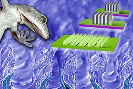 Die GaTech-Forscher um Michael Varenberg, Assistenzprofessor für Maschinenbau, erdachten eine völlig andere Produktionstechnik. Sie benetzen eine glatte Unterlage mit flüssigem Kunststoff und tauchen, wenn er teilweise ausgehärtet ist, kurzzeitig feinste messerartige Strukturen hinein. Diese bleiben erhalten, bis das Material vollkommen fest ist.